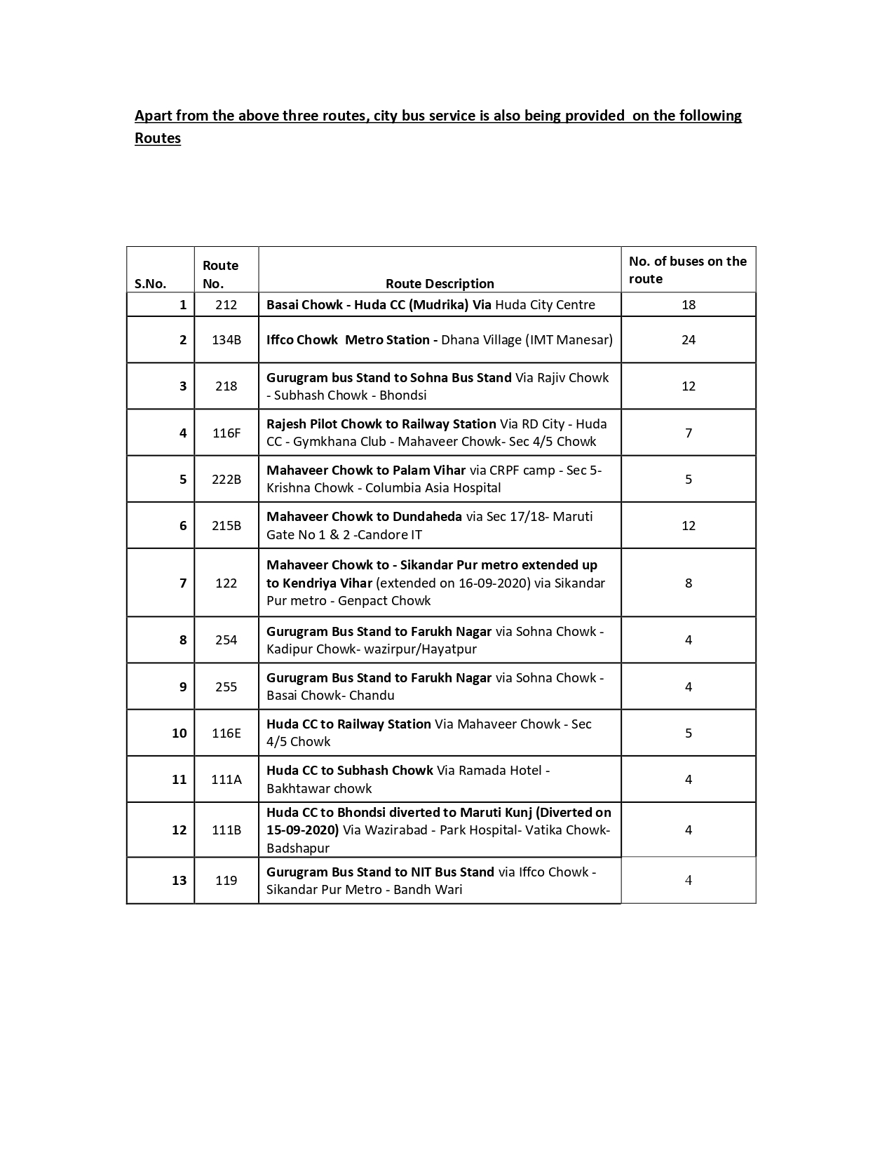 For ease of commuters and to provide enhanced connectivity in Gurugram, the Gurugram Metropolitan City Bus Limited (GMCBL) has introduced following three more routes in Gurugram with four buses on each route..........
